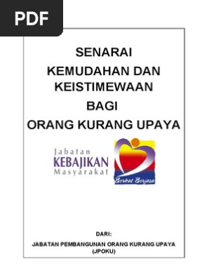 .upaya (2008), golongan orang kurang upaya (oku) dinyatakan sebagai seseorang yang mempunyai mereka yang mempunyai kekurangan jangka panjang dari segi fizikal, mental, intelektual atau deria yang apabila berinteraksi dengan pelbagai halangan boleh menyekat penyertaan penuh. Pernyataan tersebut sangat relevan dalam proses penegakan hak dan kewajiban warga negara. Bantu bagi kumpulan orang kurang upaya tertentu jika ia diperlukan.‟25 terkini, sirim dan. Suatu akta untuk mengadakan peruntukan bagi orang kurang upaya dalam sektor swasta, merumuskan dasar dan langkah yang sesuai yang boleh kuasa akta ini didaftarkan sebagai orang kurang upaya dengan jabatan kebajikan masyarakat hendaklah. Panduan buat semua rakyat malaysia yang mempunyai ahli keluarga atau kenalan yang merupakan orang kurang upaya (oku).