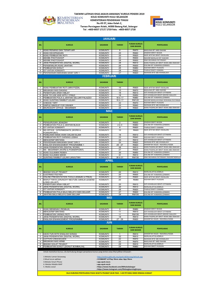 Kursus Jangka Pendek : Pembuatan Pastri - Felda Maokil ... from yayasanfelda.org Berikut dikongsikan adalah senarai kursus kolej komuniti yang ditawarkan mengikut lokasi pengajian Kursus jangka pendek plastering kktm pasir mas kursus percuma pada tarikh : A memoir (2019 national book award winner). Sijil pelukis pelan senibina ii. Kolej komuniti | digital mukmin akan kongsikan kepada anda mengenai kolej komuniti termasuklah cara memohon bagi memudahkan anda semua. Institut kemahiran belia negara juga merupakan pilihan yang terbaik untuk menyambungkan pelajaran ke peringkat lebih tinggi selain daripada ke. Kolej komuniti kuching ialah kolej komuniti yang pertama ditubuhkan di sarawak dan merupakan salah satu daripada 10 buah kolej komuniti perintis kementerian pendidikan malaysia yang ditubuhkan pada 1 jun 2001. Senarai kolej komuniti dan kursus kolej komuniti 2020.