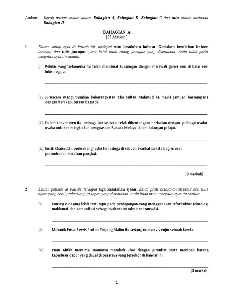 Related : Soalan Pt3 Bahasa Melayu 2018 : 1 / (25 markah) soalan 1 :.
